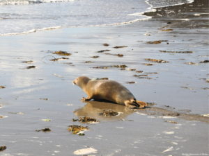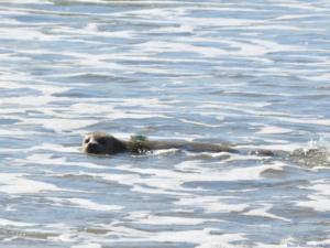 The seal’s injuries were limited to soft tissue swelling from the constricting entanglement around his rear flipper and after 48 hours of monitoring and supportive care by the MMoME team the swelling improved, and he was swimming and moving normally in his pool. On Thursday, April 9, he was released back to the ocean with a non-invasive satellite tag to allow the team to monitor his post release movements and success.