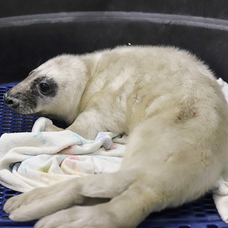 Last week, a two week old gray seal pup found his way to our center- and he traveled a long distance to get here for life-saving care.