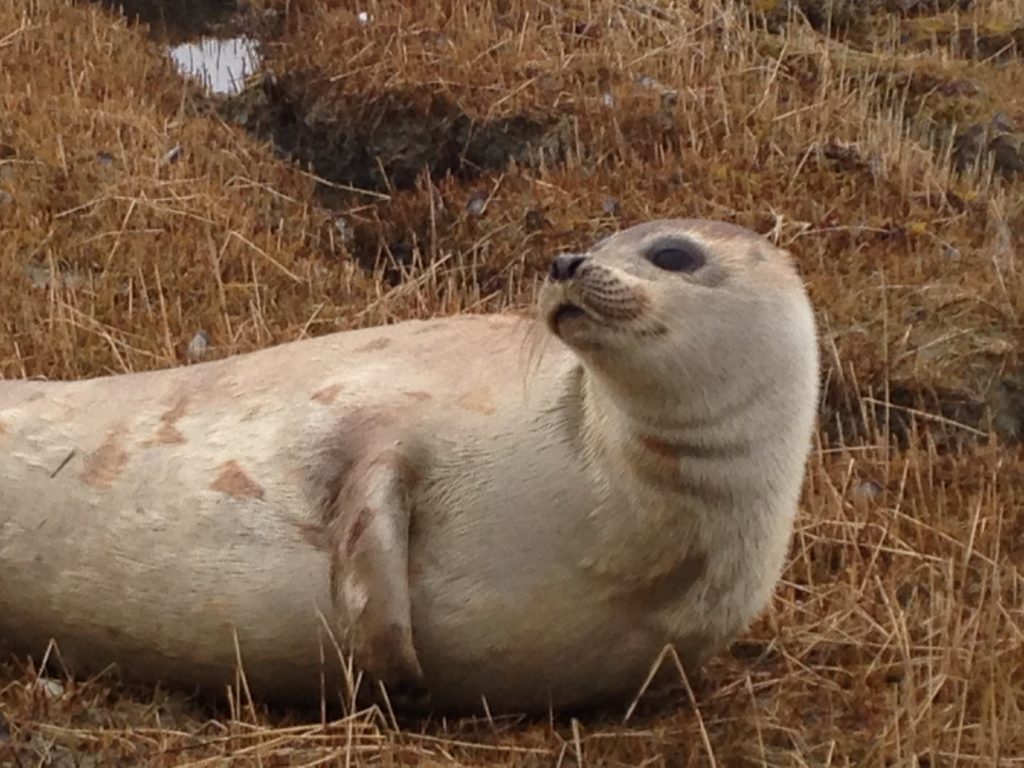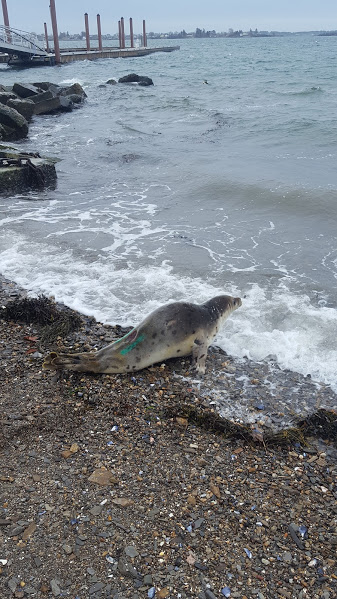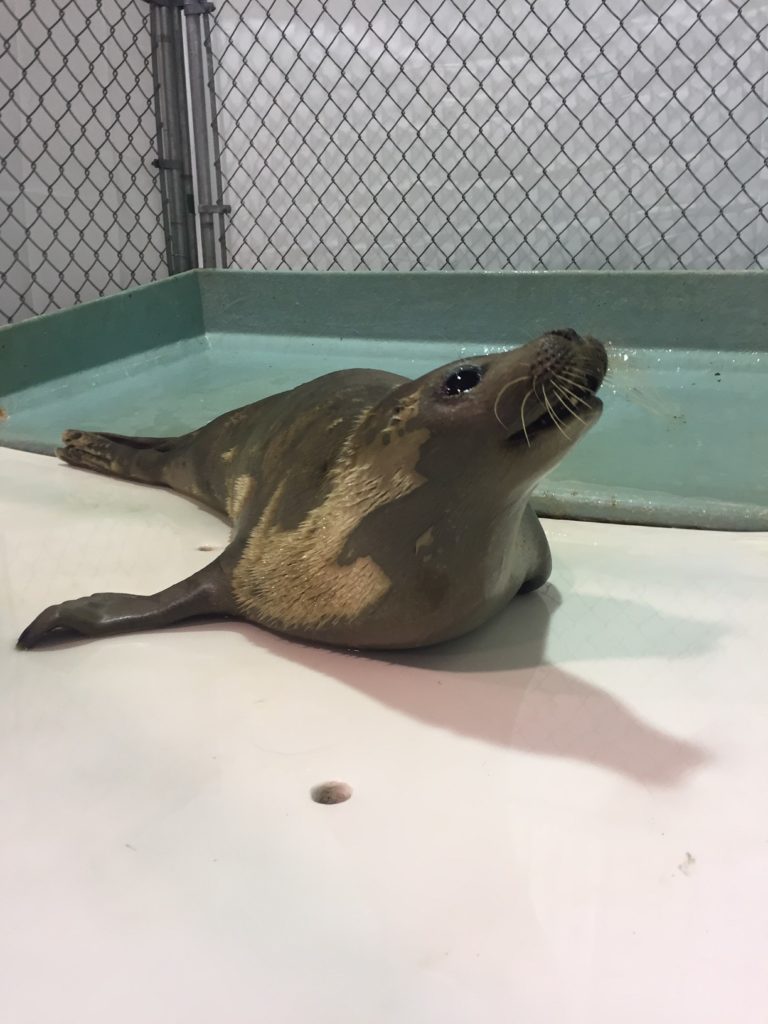 In early 2017, a juvenile harp seal stranded in a marsh in Brunswick, Maine. After being reported to our hotline, a trained volunteer was dispatched to examine him. Harp seals are an arctic species that migrate down to the Maine coast in the winter, and head back north each summer. His assessment yielded a borderline case. He was robust, alert and responsive, though seemed slightly lethargic. With no rehabilitation space available, our options were limited. The decision was made to monitor him closely and reassess if his condition changed. However, he was gone the next day. A few days later he reappeared the next town over. Through photographs, his unique markings identified him as the same individual. Looking less active, he was collected and brought to MMoME’s triage center for a more in-depth evaluation, including a comprehensive blood analysis. After consulting with our attending veterinarian, it became evident that he was dehydrated. He was kept in MMoME’s triage center for 24 hours of aggressive IV fluid therapy. He responded well, and after filling his belly with fresh herring, he was released!