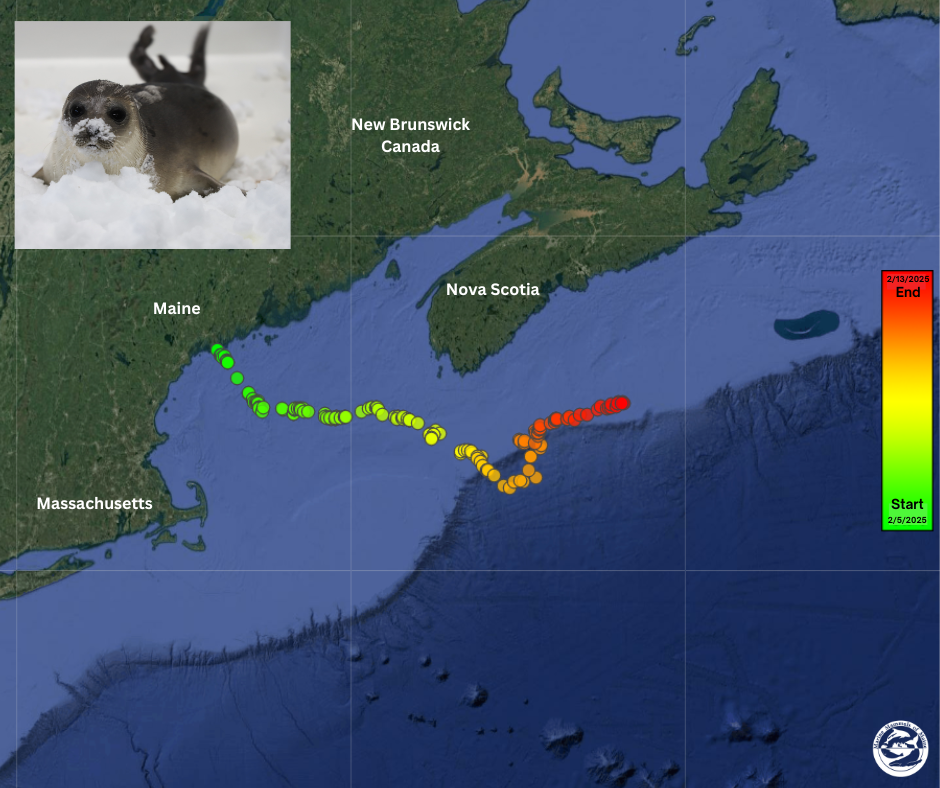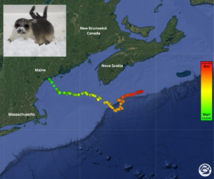 One of our recently released harp seal patients has been on the move (yes that dark part in the map is the edge of the continental shelf!). We’re going to share more about her important story in an upcoming Friday Night Video. Sign up for our email updates here and stay tuned for more!